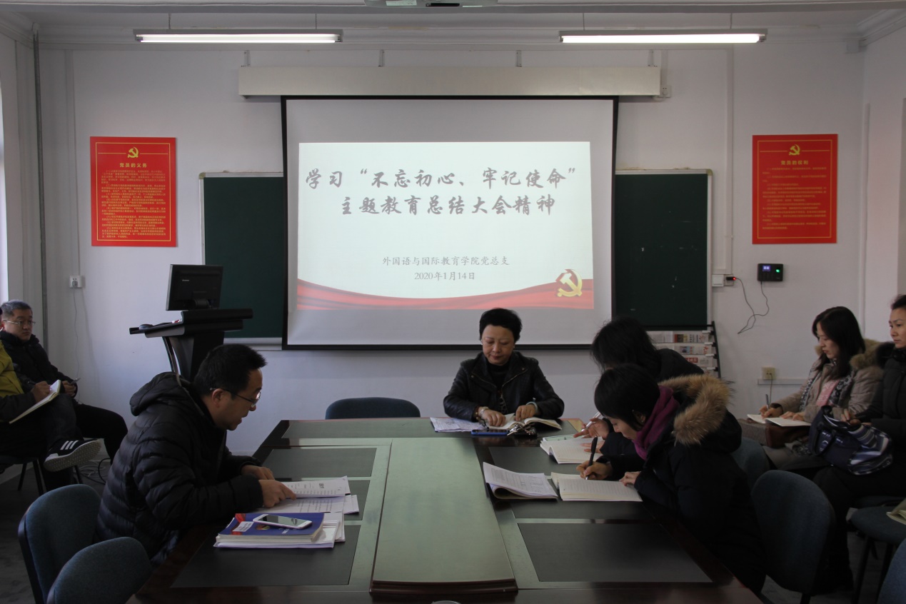 1月13日下午,0638太阳集团官网党总支在一教206会议室召开全体教职工大会,学习“不忘初心、牢记使命”主题教育总结大会精神。会议由党总支副书记崔永光主持。