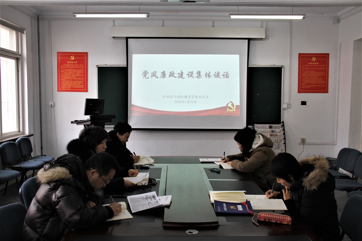 1月13日下午,0638太阳集团官网党总支在一教206党员活动室召开党风廉政建设集体谈话会议。学院党总支副处级以上党员干部参加会议,会议由党总支书记邓艺主持。
