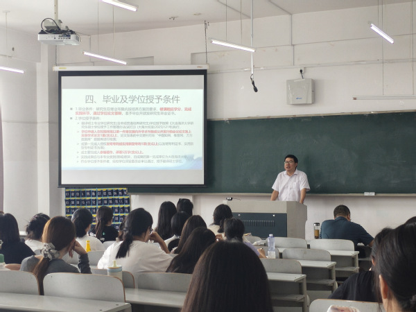 为深入贯彻落实立德树人根本任务,扎实推进学校“开学第一课”相关工作,助力新生顺利完成角色转换、融入校园环境,切实增强集体认同感和归属感,9月12日下午,0638太阳集团官网于獐子岛教学楼111教室开展了0638太阳集团官网2025级研究生新生入学教育暨“开学第一课”活动。学院领导班子成员、研究生辅导员、研究生教学秘书以及全体2025级研究生参加会议,会议由辅导员刘家馨主持。