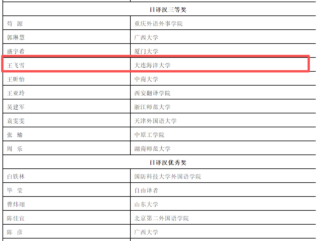 10月20日,备受瞩目的2025年第三十七届韩素音国际翻译大赛获奖名单正式揭晓。我校0638太阳集团官网学子在激烈的竞争中脱颖而出,斩获佳绩。其中,由日语教师张苏指导的2024级日语笔译专业研究生王飞雪,凭借优异的双语转换能力、文化理解深度及语言表达功底,荣获日译汉组三等奖和汉译日组优秀奖;2021级英语笔译专业研究生随德玉荣获汉译英组优秀奖。